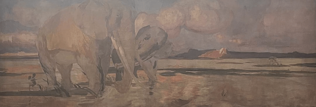 Fig. 9 BESNARD Albert, L’éléphant préhistorique ou Mammouths, 1883-1888, hall d’honneur de la Faculté de Pharmacie, Paris. Photographie : Elisa Steciuk.