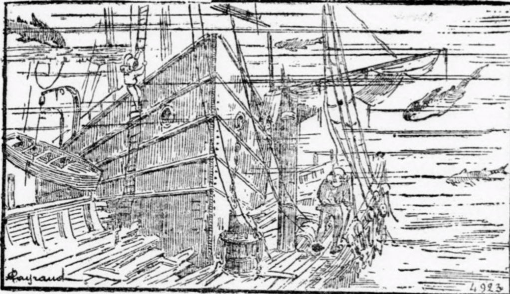 Fig. 4 : Les navires sombrés, pl. 4923, dans ANONYME, « À l’Exposition, une visite à l’aquarium », La Patrie, 9 juillet 1900, p. 1.