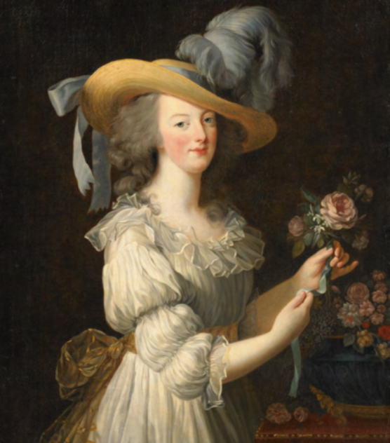 Très vite, les robes s’élargissent et les coiffures prennent de la hauteur afin de montrer l’émancipation progressive de la reine vis-à-vis du poids de l’étiquette. Enfin, la dernière partie du film montre la simplification du vestiaire, on y voit Marie-Antoinette abordant la fameuse robe-chemise (Fig. 5) évoquant les sous-vêtements dans laquelle elle est immortalisée par l’artiste Elisabeth Vigée Le Brun (1755-1842) (Fig. 6). Cette simplification sert à cristalliser la maternité nouvelle de la jeune femme, mais il annonce aussi, par extension, son destin funeste.